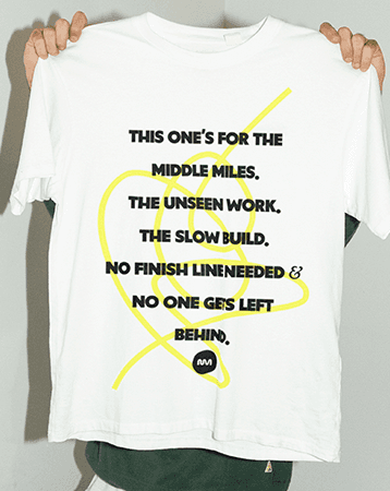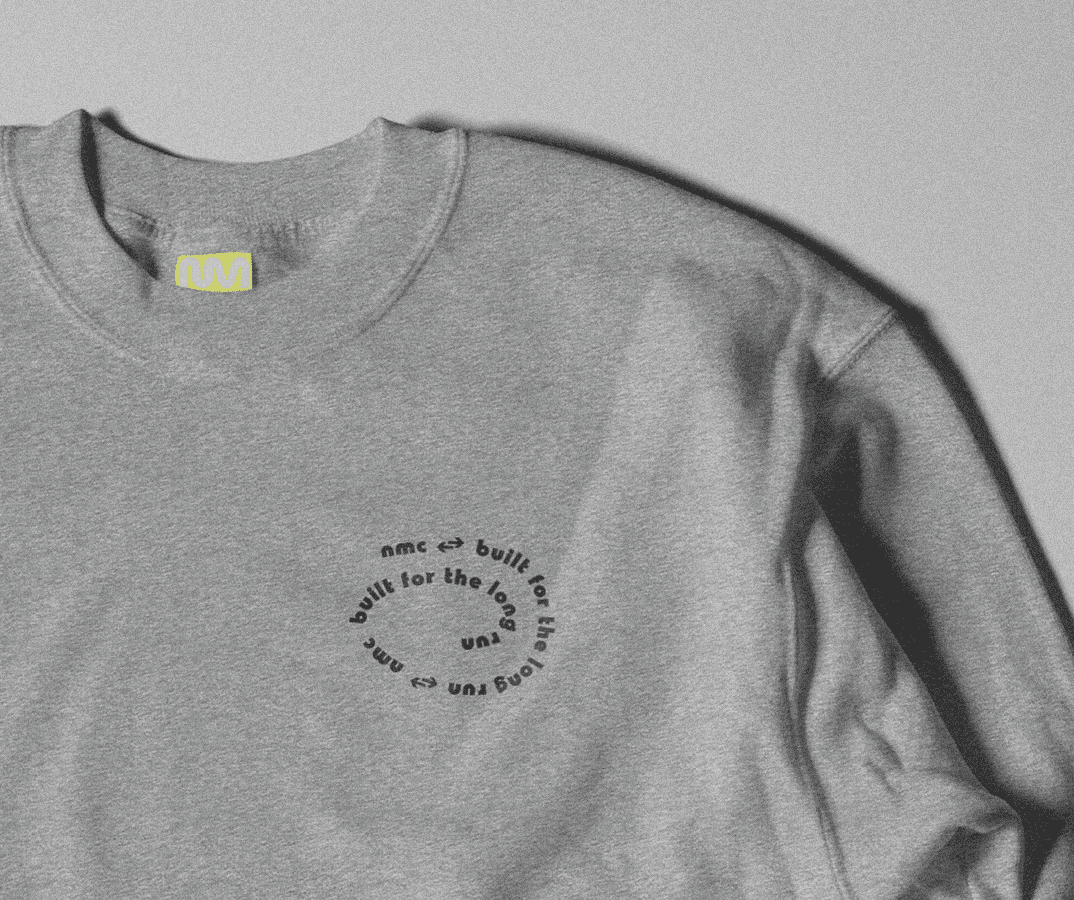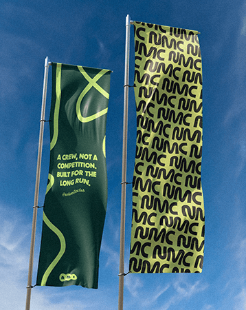 The NM mark captures motion. Its fluid lines echo running paths, city routes, and the Mighty Mississippi. Abstract but intentional—fast without being aggressive, expressive without losing clarity. We explored more literal and typographic routes, but this one had the right energy. Fluid, rooted, and ready to move.